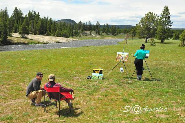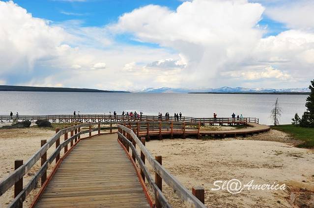这里基本上属于黄石的中部区域,也是很大的一个景点,晚一点来停车位比较难找,只能在停车场多绕一圈,看看有没有人离开。