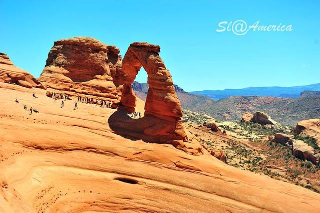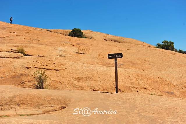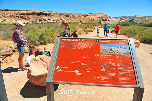 要说拱门国家公园里面哪个拱门是最知名的,恐怕非精致拱门莫属了,很多人专门来拱门公园就为了看这个拱门一眼,但要来这里可不是向前面几个拱门那么简单了。通过Delicate Arch Trail步行到精致拱门,单程2.4公里,往返4.8公里,一般需要2-3个小时。前半段路况较好,后半段较为陡峭,但一般体力者基本可以到达,准备好充足的水即可。