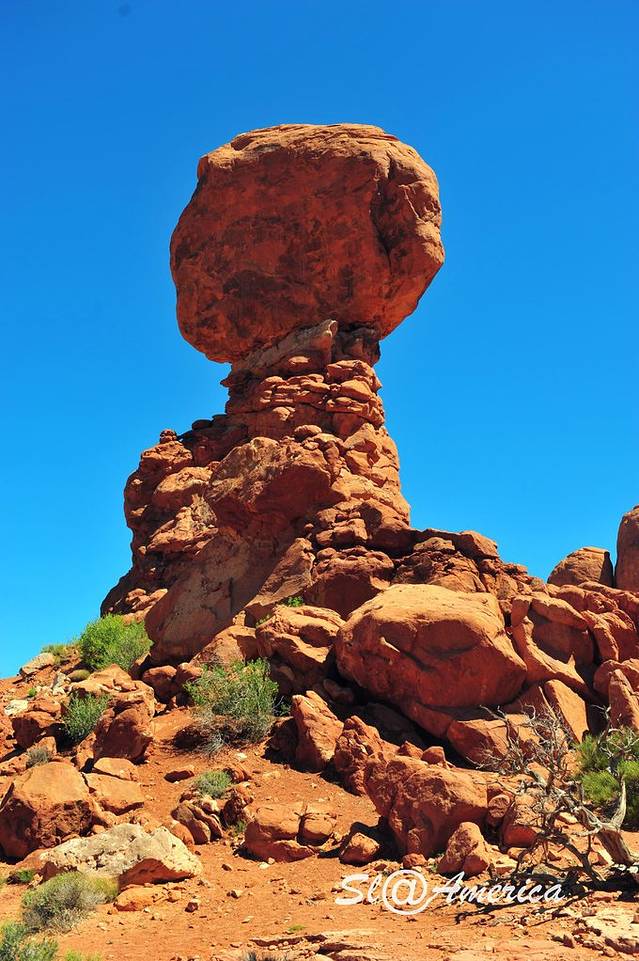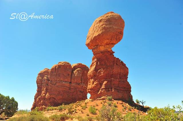 Balanced Rock平衡石景点,据说世界上有不下十处有名的的平衡石,这是游客最多的之一。就在主干道边上,路边停车即可沿着小道参观,大约15-30分钟便可以绕着石头一圈。
