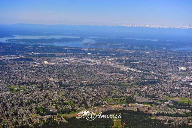 之前来到西雅图晴天的照片,从空中看上去有点像加拿大) 的(温哥华) 。