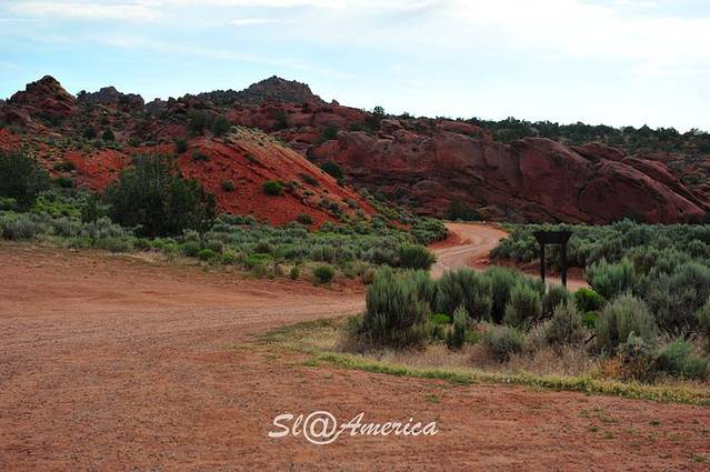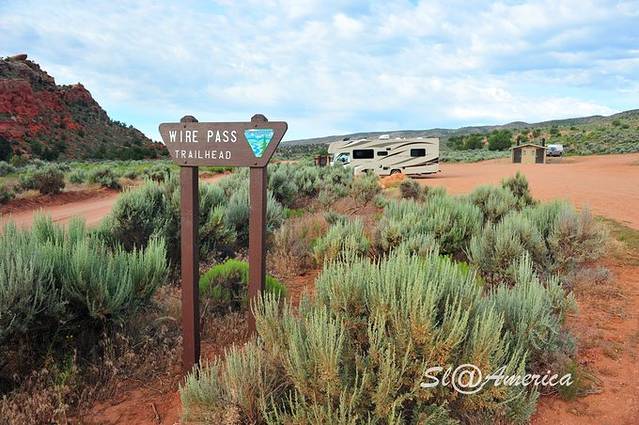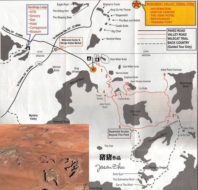 这里具体的位置在亚利桑那州/犹他州界北方13英里处,美国163号公路上,其实可以在Google地图上直接搜素这个名字,便可导航到这里。如果你是从拱门方便过来,就更好辨认一些,很多车都会在这里停留,你只需要看着车多的地方停即可。