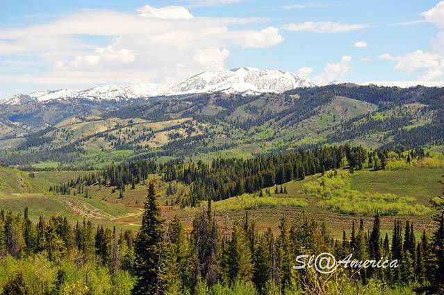 2、Teton Point Turnout,从Snake River Overlook出来,沿着US-191继续向南走不远就能看到路边一块写着Teten Point Turnout的牌子,这是一个不大的停车场,这里是一个欣赏蒂顿山脉全景非常好的一个地方。