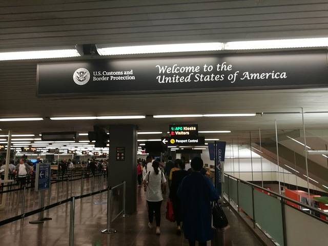 但不得不说,美国的海关是我去过所有国家里审查最严的地方,看着前面的人大部分都被问了无数个问题,还有不少国内过来的语言不是很熟悉的人,有点无奈地用手势比划着,实在不行只好叫上旁边的维护秩序华裔或者其他英文好的旅客来进行翻译。当然,也有人直接被带到了一边,显得有点紧张气氛。