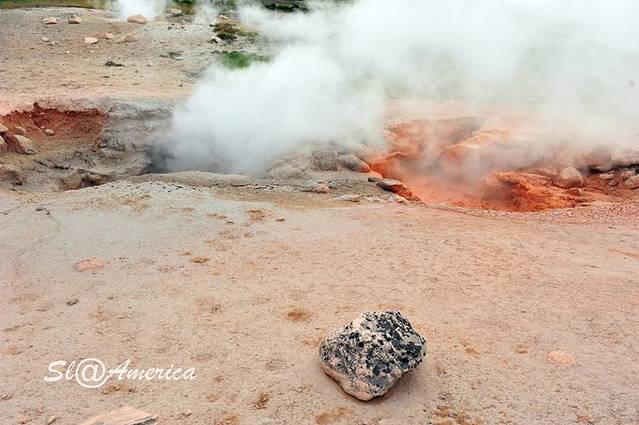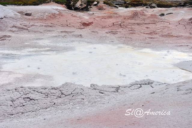 这是另一处很有特点的地方,同一处地方却喷发出不同颜色的泥浆,这在其他地方是没有看到过的。