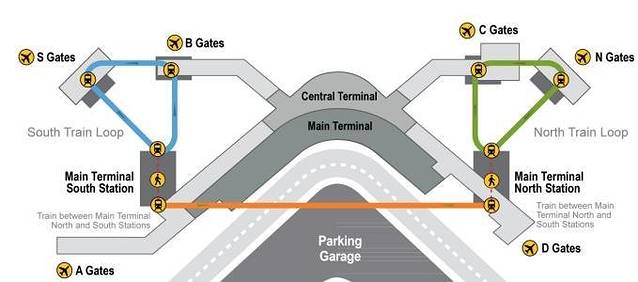 西雅图机场平面图,感觉比北京机场都复杂,还要做各种小火车才能到达目的地