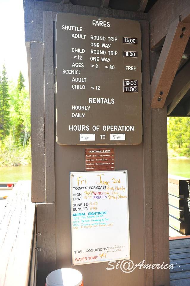 走到码头,可以在前台咨询当然的游船情况和徒步的线路,游船的项目主要分为半个小时和1个小时的游览线路,由于Inspiration Point和Hiden Fall等知名景点都关闭了,因此当天也没有专门Shuttle Boat可以做,因此要去这俩个地方的朋友,最好晚一些时间来,貌似这些地方只有夏季才可以进入。