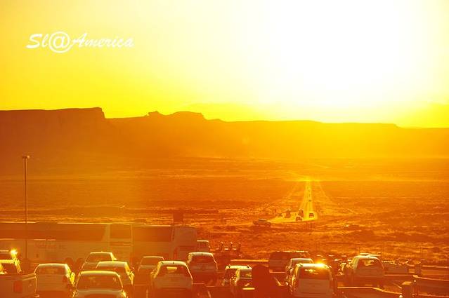 这个指示牌不是太好找,需要停车下来,走到路边才能看到,但不得不说,当你在夕阳下,看到远方绵延的公路和纪念碑谷的背景,顿时感慨这就是我想要的西部之旅,其实不仅我们是我们这些游客这么认为,即使是美国当地人,也认为纪念碑谷是西部的经典形象之一,不来这里,似乎便没有到达过美国西部。