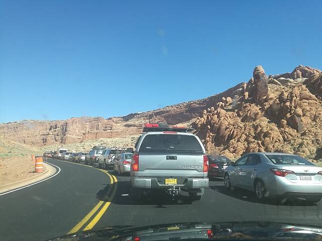 还有要提示的是,来拱门公园最好赶在一大早,如果稍晚一些,便可能会遇到堵车的场面,我原本以为只有在国内才会遇到的情况,没想到来美国也是这样,但也仅仅在拱门公园遇到过,这也可想而知这里是有多火。我们在这里排队进公园,就花了差不多半个小时。