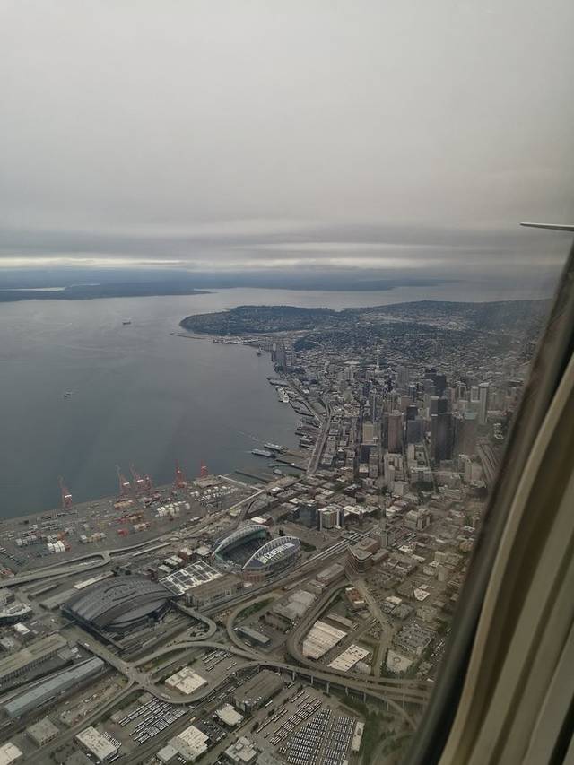 西雅图上空,由于有着北京遇上西雅图的铺垫,让国内不少人对这里有着更多的期待和感情,第一眼望去,靠海的西雅图确实是比较吸引人的。