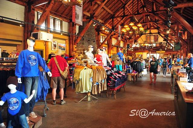 老忠实泉内部的商店,里面的东西很多,要买纪念品的游客可以在这里进行选购。