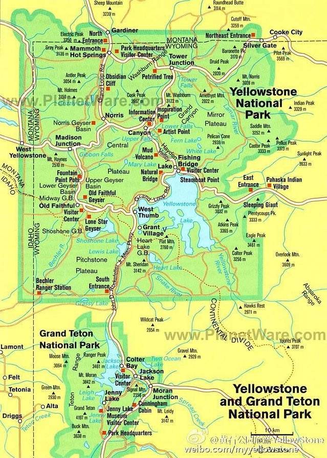 其实,如果有朋友是从南部进入黄石公园,最后又是从南门返回(盐湖城) ,更为合理的行程安排是,选择大提顿公园的西线或者东线中的一条在开始时游览,而在返程时再对另一条线路游览,这样免去了走回头路的时间。