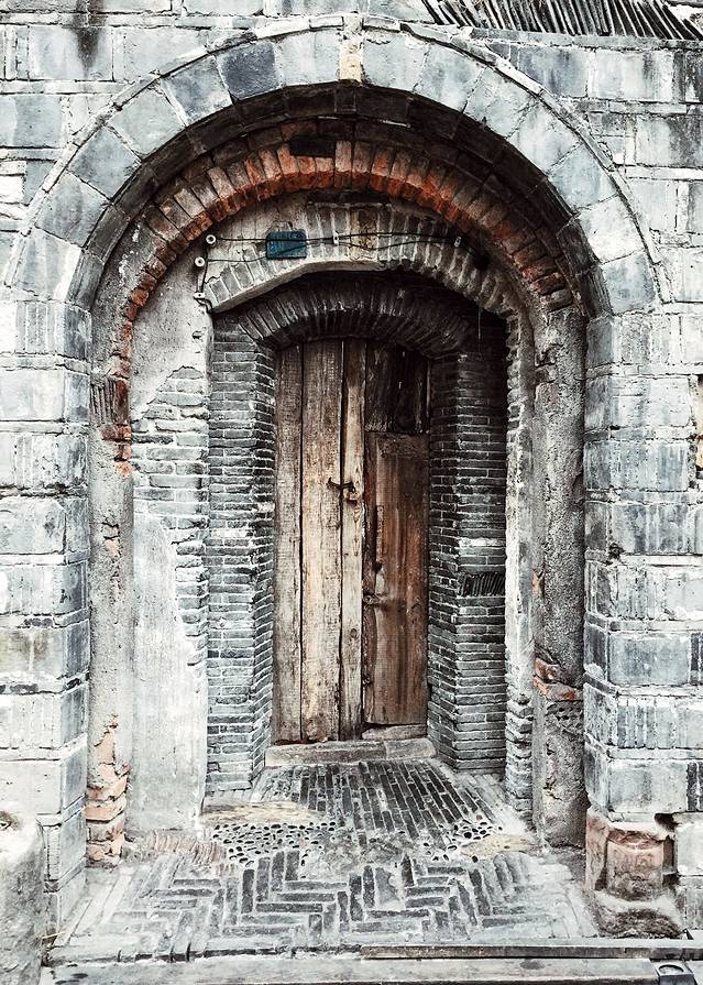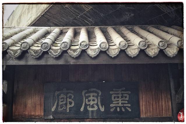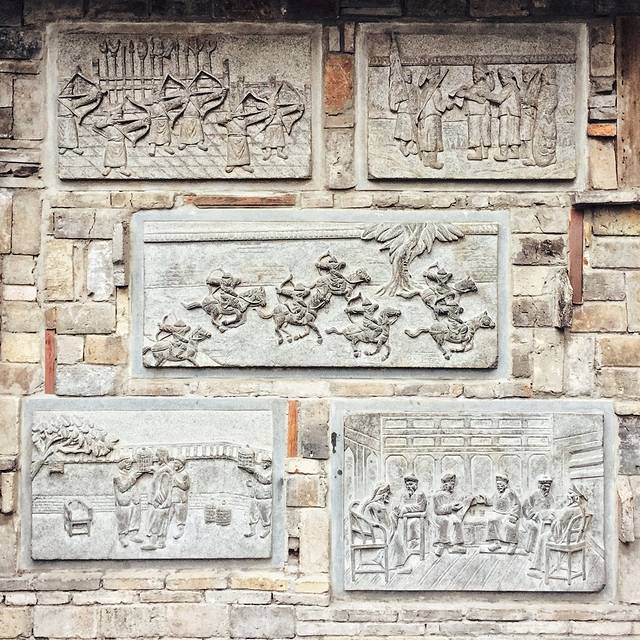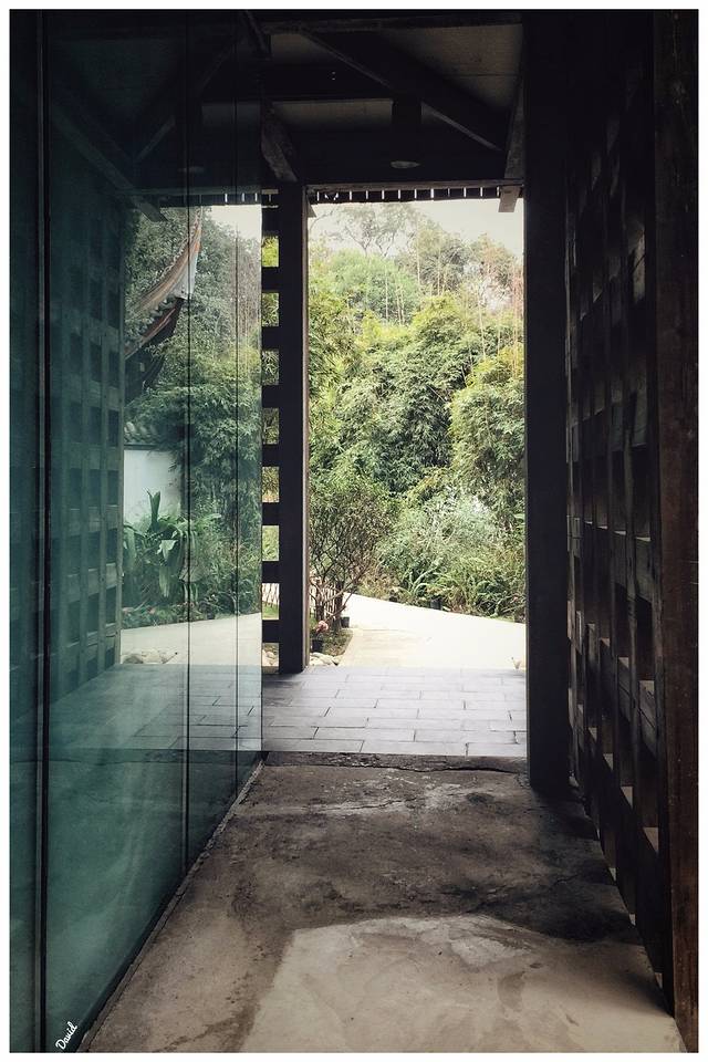 灰色屋瓦排列成墙,而现代的铁棒抽拉排成瓦状,古今交汇,引得游客流连其中,驻足拍照,兴奋异常。