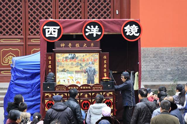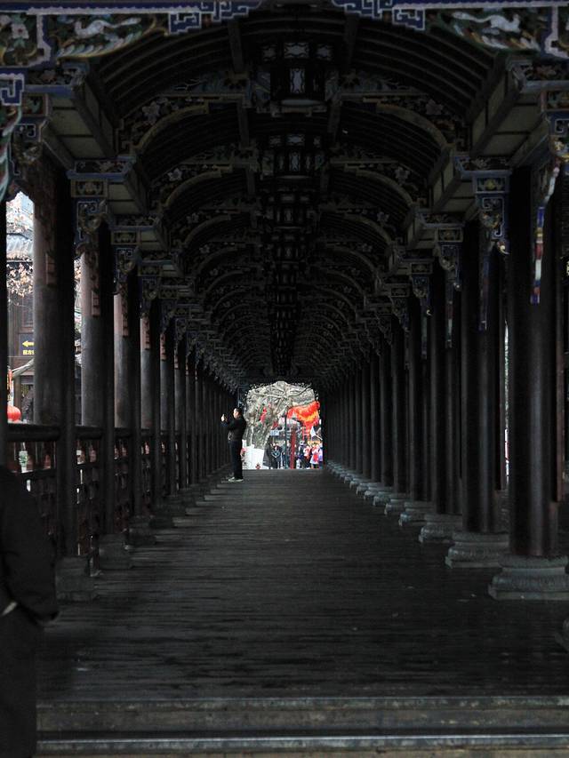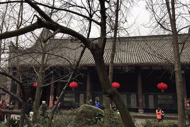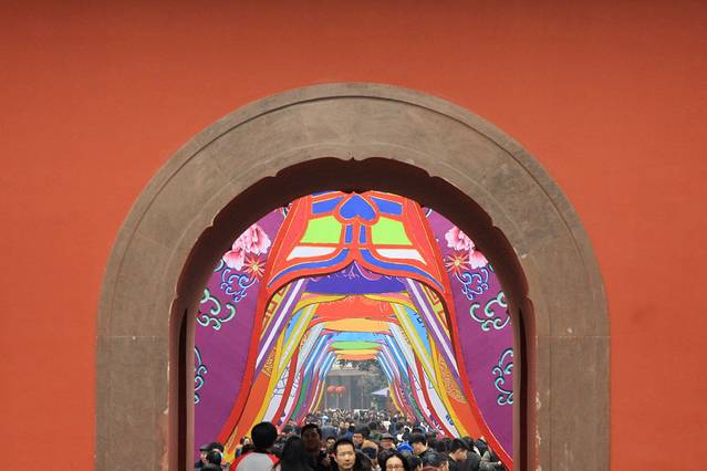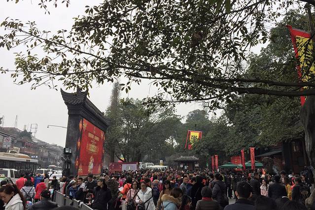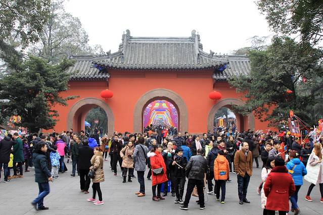 很快出租车就停在了武侯祠附近,刚下车就看到的男男女女、老老少少成群结伴的往大门口走去,还有很多人围在景点门口合影留念,我转悠了半天,才总算找到一个看起来人少的角度,拍了几张照片,然后悻悻然的去买票,准备开始庙会之旅。