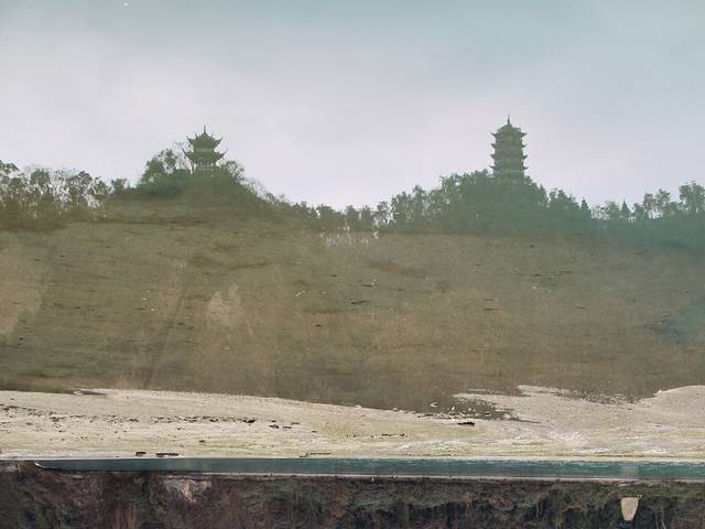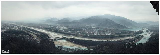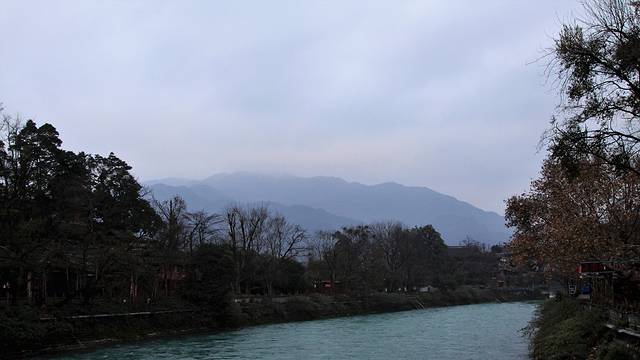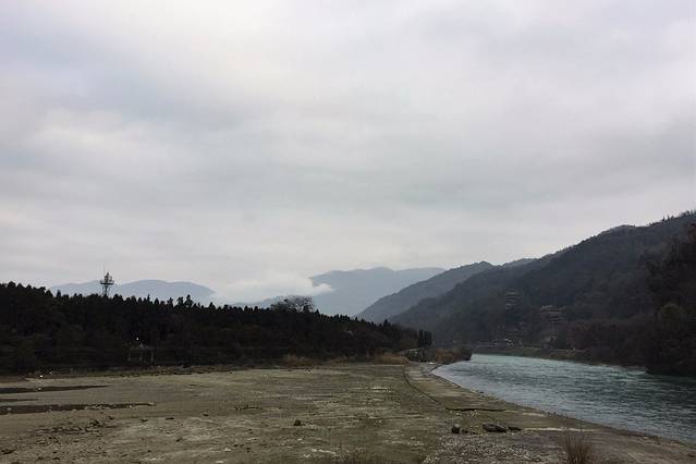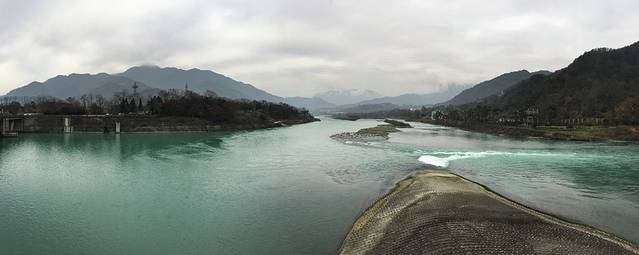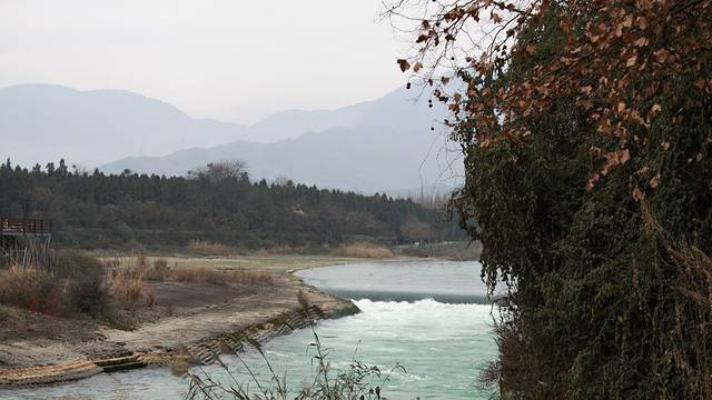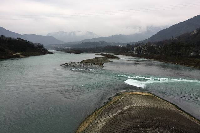 离了伏龙观左转。导游说这里看到的就是都江堰,然后滔滔不觉开始介绍,不过我完全没听进去。