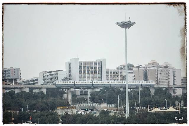 出发之前,预定了专车接机,取好行李,电话联系司机师傅,然后推着行李走出了航站楼。出门的一瞬间,内心狂喊了一声“重庆,I'm here”。但是,突然感觉一股潮闷的空气扑面袭来,瞬间的反应是这个温度有点热,接着就是远处一列行驶中的高架地铁映入眼帘。不错,重庆,挺好的。