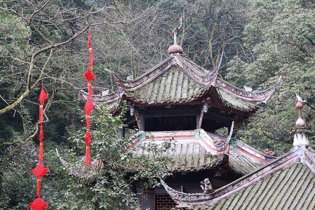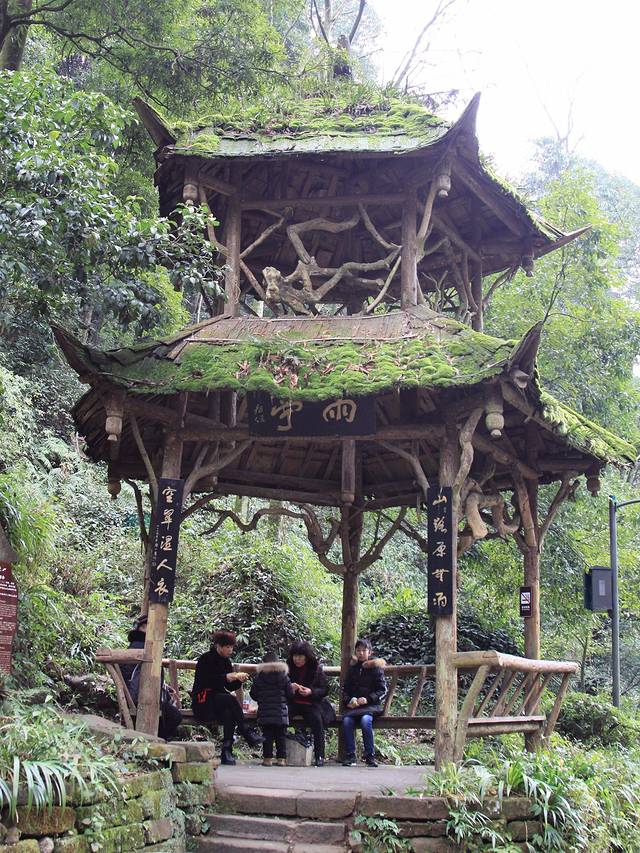 据说当年客居成都草堂的杜甫游青城时,刚进门便遇突发暴雨,杜甫便在山道边古楠下避雨。后来,此处便修起了供游人休息避雨的茅亭。