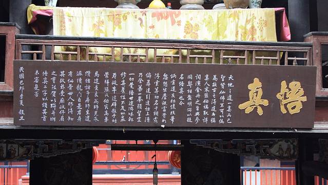 始建于晋代,后废,唐玄宗时又加修建,五代间前蜀王王衍重建,明末毁于火。现存殿宇建于清代同治年间,现有老君殿、三清殿、道德经堂、文武殿和玉皇殿。