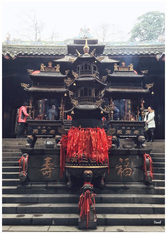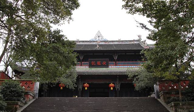 过了堰功道正对的就是伏龙观,而它就修健在离堆之上。传说李冰父子治水时曾制服岷江孽龙,将其锁于离堆下伏龙潭中,后人依此立祠祭祀;北宋初改名伏龙观。不过很遗憾,没有进去看一下伏龙观内收藏的众多古物。