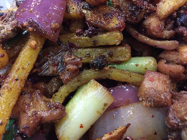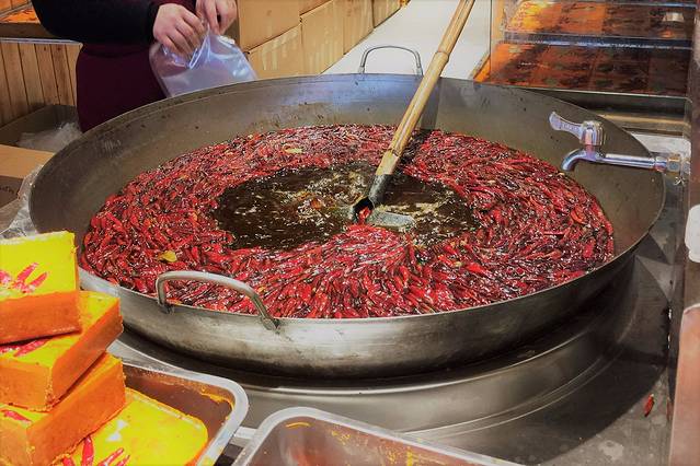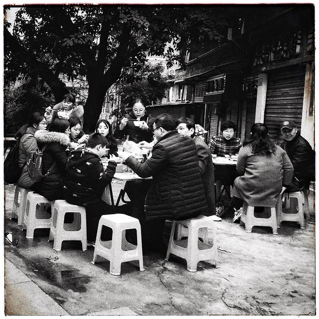 大巴车原计划是把大伙送到宽窄巷子,后来临时停在了地铁站附近。结果一路溜达找吃的,却意外的进了一家店,享受了一顿大餐。据说,该店平时排队几小时才能有座位,结果我不过是等了十分钟左右。所以说,人生处处有惊喜,顺其自然,随遇而安。