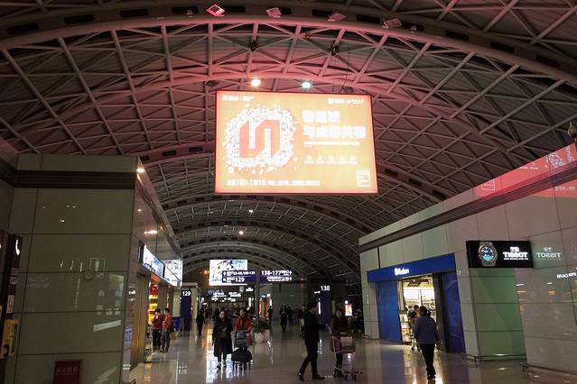 顺利通过安检,在候机楼里边随便溜达了一会,然后径直找到对应的登机口,坐在旁边椅子上开始无聊的等待。时间一点一点的过去,座椅上的人也渐渐的多了起来,漫长的等待后,所有人陆续开始排队、登机,起飞,降落,离机,取行李等等,很套路。