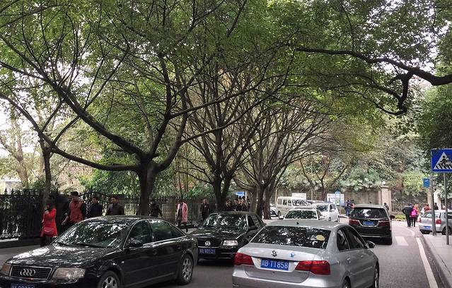 一边走,一边随意的拍照和张望。没多久,选择步行前往的人就陆续多了起来,所以后来索性关了导航,跟着人群一直向前走。途径红岩魂陈列馆、烈士陵园、西南政法大学、四川外国语大学、烈士诗碑林、梅园、歌乐山森林公园等,一路上那叫一个人多车多爆堵,双向的车都挤在一条窄路上,两边也满是步行上下的游人,嘈杂吵闹。