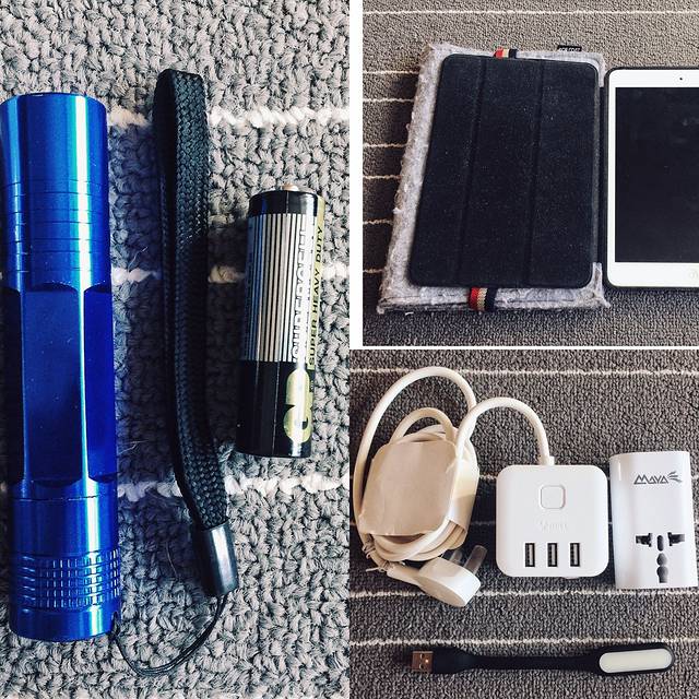 A:公牛智能迷你插座(带USB插口)、micro usb线*3、苹果充电线*3、国际旅行充电器*1、LED阅读灯(USB口)、袖珍手电筒*1、Pad mini*1、Apple USB相机转换器*1
