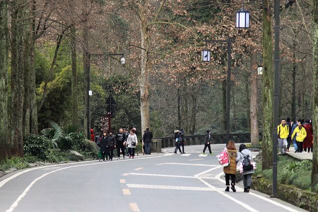 电瓶车很快就到站了,旁边就是玉垒山牌坊,大家下车后纷纷都去拍照,然后开始跟着导游一路步行游览。