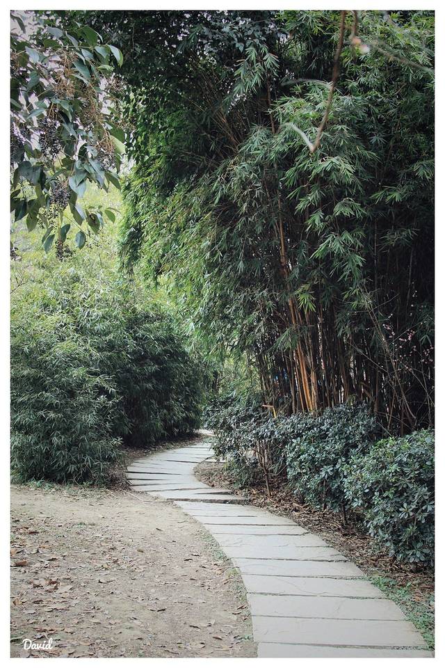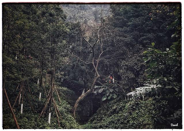 拾级而上两边景色郁郁葱葱,幽深的沟壑中的溪水潺潺而下。