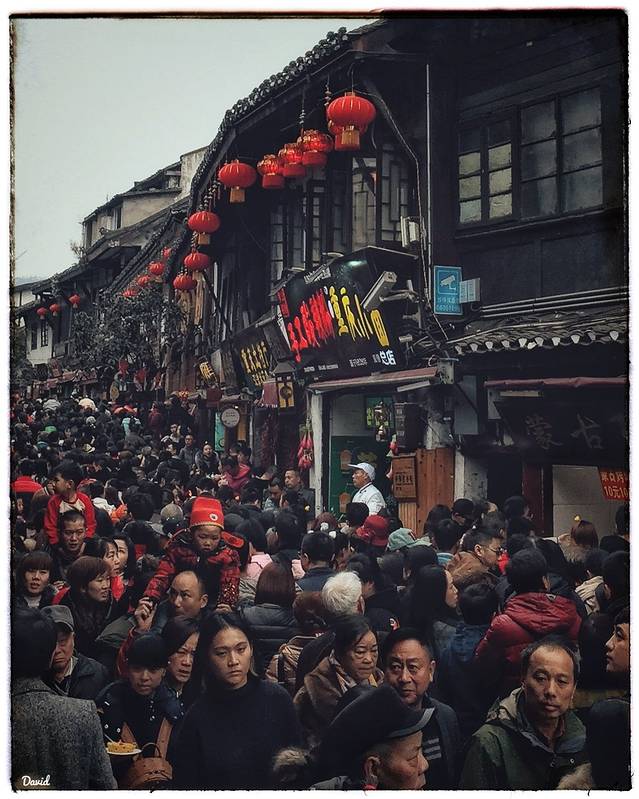 刚才已经说了,春节期间的磁器口古镇,只能用人山人海来形容,不夸张地说,如果你是一块石头站在这来往的人海中,分分钟就可能被人海卷走并迷失方向,所以带小朋友的家长们,请一定记住,孩儿不离手,人在孩儿在。