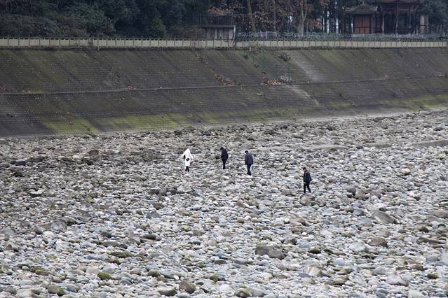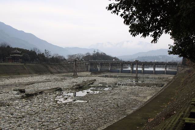 往前走几步就到了飞沙堰。一眼望去,却并未看到有什么特殊的景致。只有几只白鸟悠闲的飞飞停停。