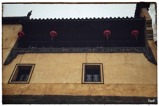 红红的灯笼高高的悬挂,给这古老的街道增添了浓浓的节日气氛。