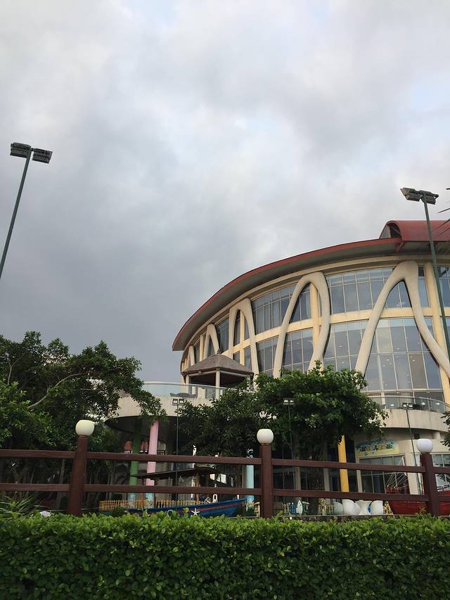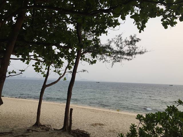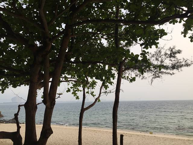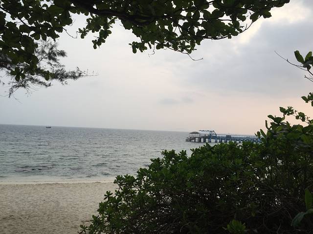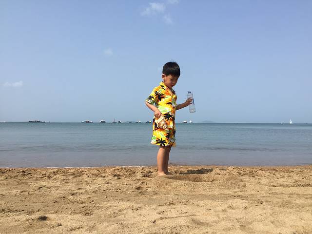 吃饱喝足,豆豆说:爸爸咱们去海边吧。 我说:行,咱们出发〜〜〜!!于是我们坐着酒店的电瓶车,又出岛了。