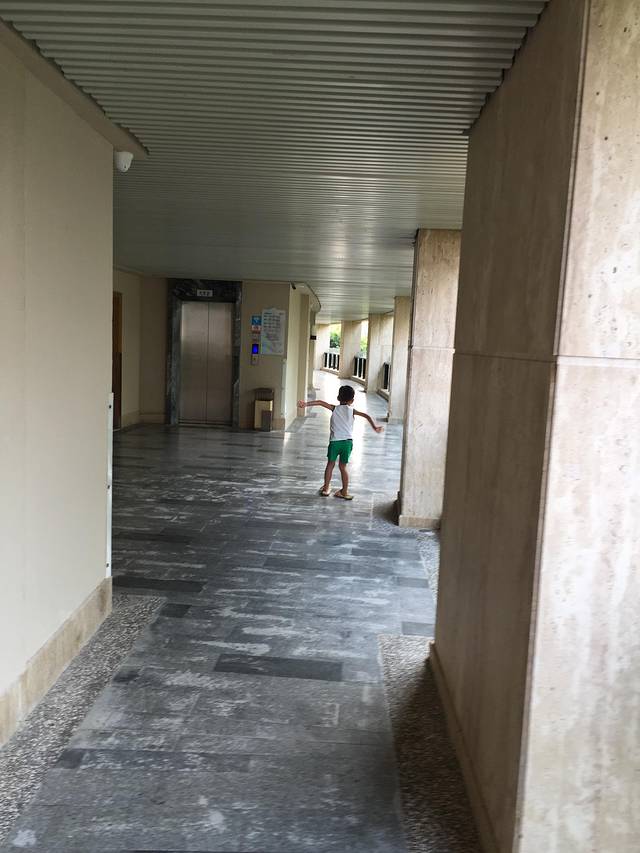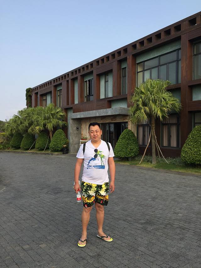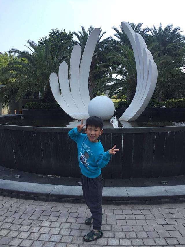入住前,在酒店楼下豆豆让我给他拍张照。 看来他很喜欢这里。
