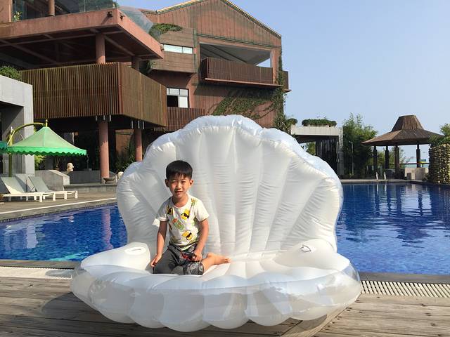 排队办理入住的客人,我咨询了几个问题之后再跟前台说明我们办的套餐所需要的券,都在她这里领,取完这些券后,又拿了一个酒店送的小海龟玩偶,因为我是团购了2天的,所以送了2个小海龟,可给豆豆高兴坏了。拿了采摘券,两天的电瓶车券之后我们就去客房了。