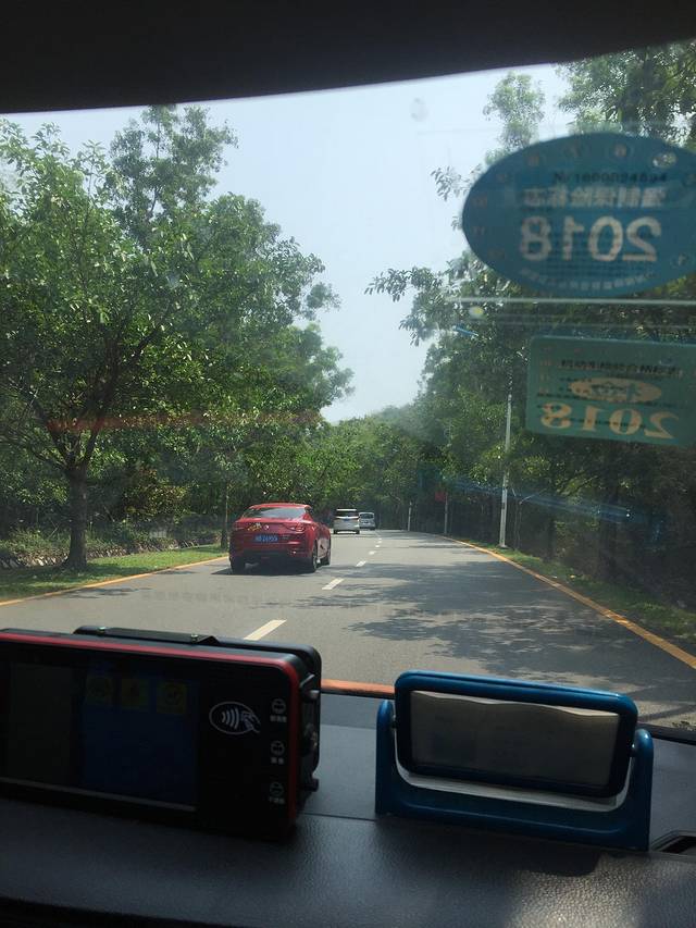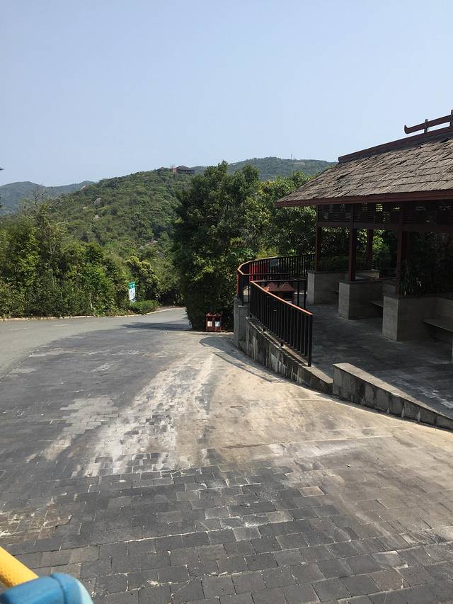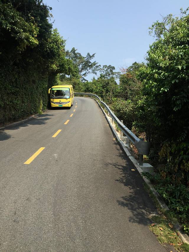 大概5分钟后,接我们的电瓶车来了,上车后有我们和另外一个房型的客人,服务员帮我们把行李装上车,让我们坐上车后服务员提醒给宝宝系好安全带,之前看别人写的攻略上写的服务员开的电瓶车很快。 我就帮豆豆系好安全带,我和老婆坐在他的两边保护着他。 电瓶车启动后〜〜〜〜〜车子飞快的在山间行驶,司机开车的技术一级棒!!!!