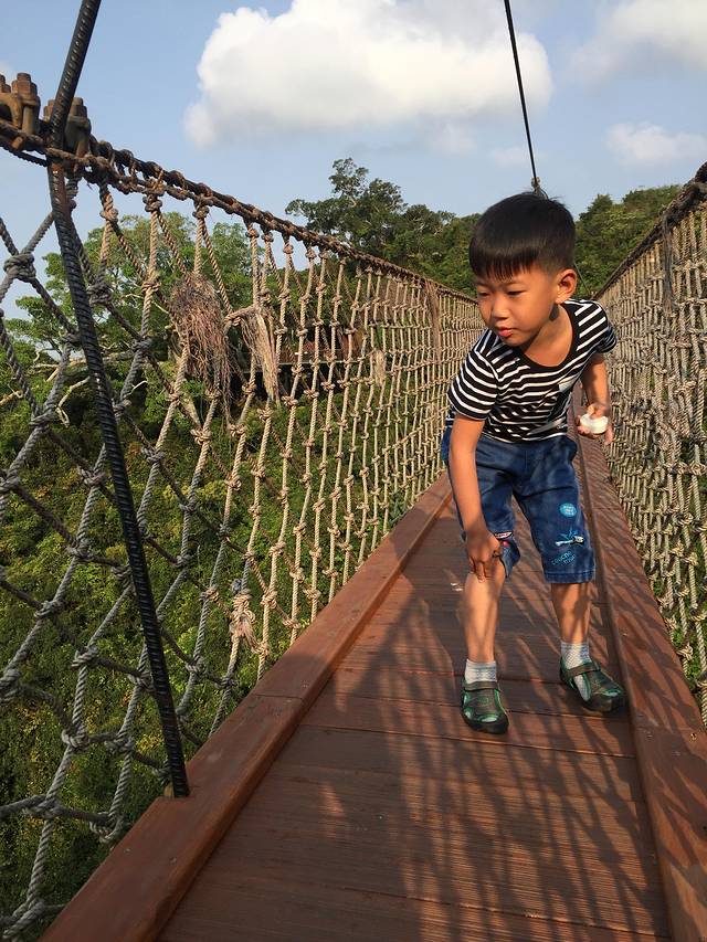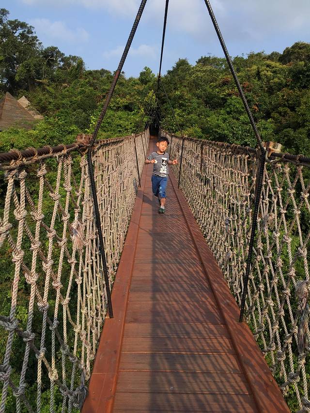 接下来就是过江龙索桥了。对了,提醒大家一直,在退房当天早上出来之前,先把行李收拾好,摆放好,然后等要退房的时候,给礼宾部打个电话,让他们帮你把行李送到大堂就可以了。