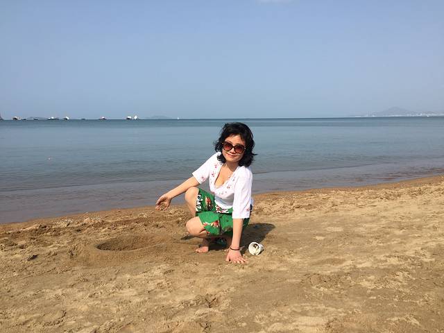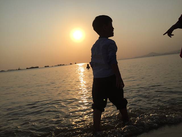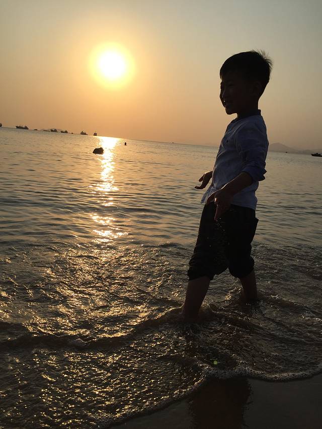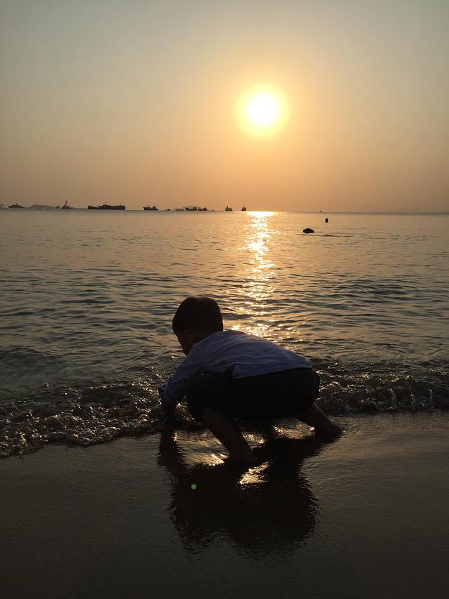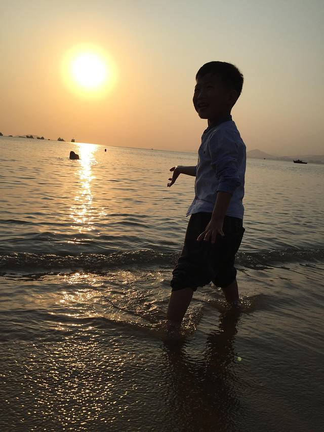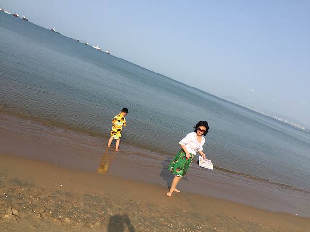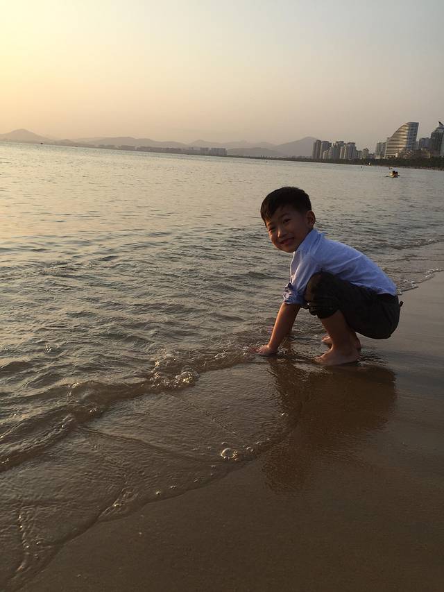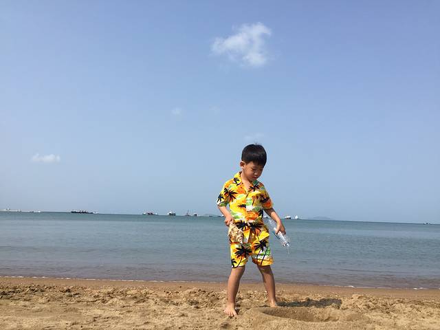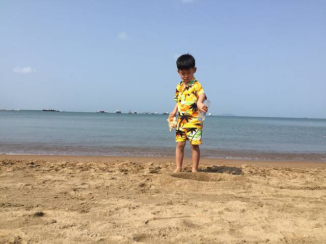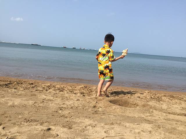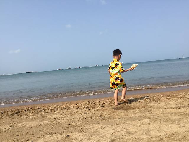 这里的海水比渤海湾的干净多了。 这才是大海。这里的沙滩也不错。 豆豆玩的很开心〜