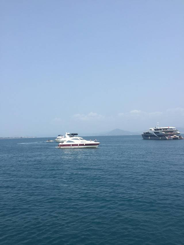 晒着太阳突然想起来一个事情,鸟巢度假村那个团购还赠送双人游艇呢,需要提前一天预约,立即打电话预约!!! 电话打通了,客服让我给她发个短信,将姓名,参与人,需要接送的酒店发给她就可以了。 大概1个小时后,船老大打电话过来了,跟我讲了注意事项,接送地点, 还告诉我因为是坐游艇出海,是去玩海的,让我带好泳衣,带好浴巾,防晒霜等等。 电话里听起来服务做的不错〜〜!后来事实证明,人家的确做的不错〜!游艇上的消费,一切都让你心甘情愿的掏钱!绝对没有强制消费。