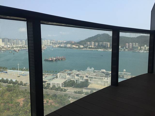 出了机场直接打车到凤凰岛,在路上和司机聊天,司机跟我说没必要去蜈支洲岛,因为排队就要1〜2个小时才能上船(我心里在偷笑,哥走VIP上岛),我跟司机说走椰梦长廊那里去凤凰岛,一路上可以让孩子看看海,看看椰子树。如果路边有卖椰子的可以停一下,给孩子买一个。 司机师傅真的带我们在路边找了一个卖椰子的地方6块一个!!!! 我直接买了2个,我喝一个,老婆和豆豆喝一个,本来我想买三个的。 但那椰子真的很大。。。。。 大概10分钟后,车来到了凤凰岛的入口处。凤凰岛上的酒店,全部是公寓式的酒店,这是个人工岛,一般游客如果想上岛是要花钱买票的。 而我们住在岛上的客人第一次上岛只要出示订单就可以上岛了。 出租车直接开到海洋之星酒店门口,我们坐电梯到前台(1101)在11层。 办理入住后回到楼下,因为我们住的房间在4号楼。 房间号是2020,180度海景亲子房。 一进房间就被那个超大的阳台吸引了,都没拍房间。 别问我为啥,哥是带着老婆孩子来看海的。