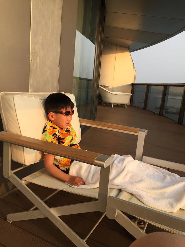 凤凰岛海洋之星酒店亲子房的大阳台。 这浴缸我喜欢〜〜〜〜