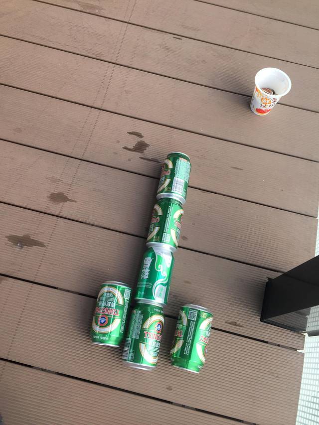 早上豆豆把我昨天晚上喝的啤酒的空罐子摆成了火箭造形,他让我过来看。 真羡慕孩子的想像力〜〜〜〜
