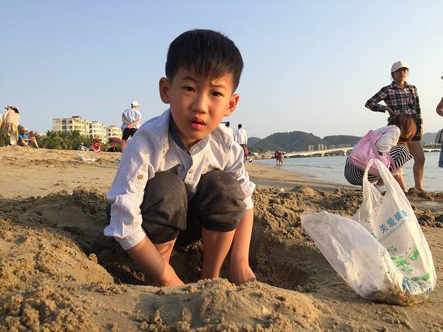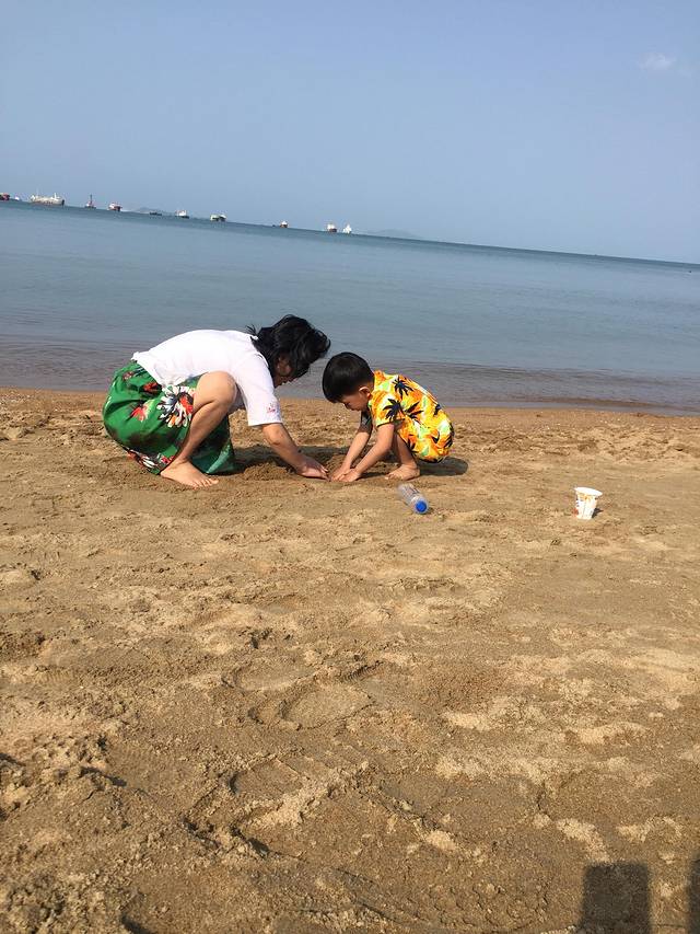 到了海边,除了玩海水以外,哪里能不玩沙子?
