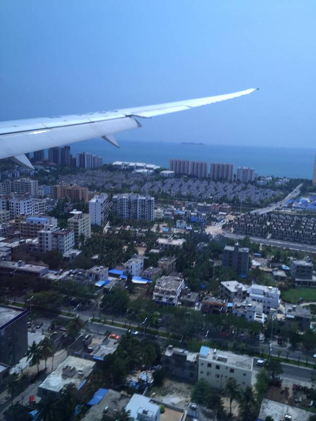 快降落了看到海边了,我们从春天,飞到了夏天。。。。