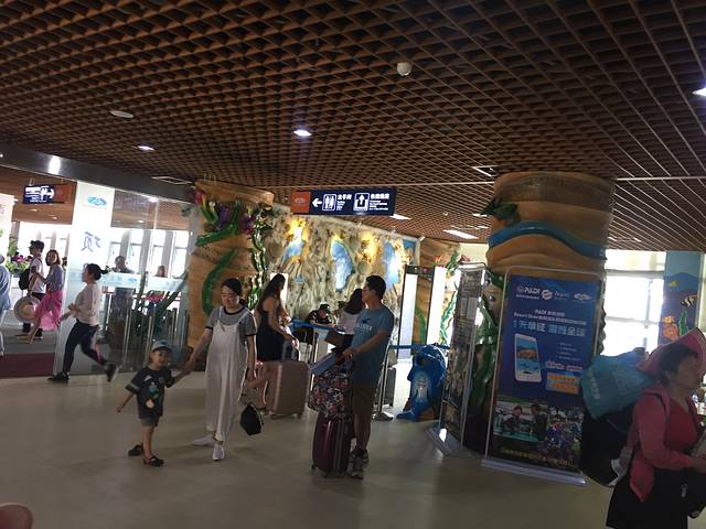 也不知道这时间是怎么算的8:25分应该是飞机起飞,抵达时间应该是12:35分,从登机关仓门,飞机开始滑向跑道,中间走走停停,9:00飞机才起飞,飞机降落的时间正好是12:35分,这也太准了吧〜〜〜〜〜 之所以选择海航的一个重要原因是〜〜〜〜〜 飞机上有WIFI!!!! 4个小时拥有WIFI可以上网的行程,是多么的爽〜! 一边和朋友们聊着微信,一边陪老婆还有豆豆聊天。 看着窗外的蓝天,白云,吃了一顿飞机餐,4个小时后,我们抵达了三亚凤凰国际机场。 一下飞机,依然是扯淡的摆渡车。。。。。 我就纳闷了,海南海空到了海南三亚,你的大本营了,依然还是摆渡车这样原始的方式,你们是让大家怀旧么?不过这也挺好,让豆豆体验一下从室外看飞机,从舷梯上上下飞机的感觉。在三亚机场的摆渡车上,我身上的汗就开始往下淌,从北京出来的时候因为是早上,气温是1度,我穿着秋衣,一件长袖POLO衫,还有一件外套,秋裤,仔裤。 。。。。 而三亚此时的气温是27度!!!!!! 我穿着这么一身超“薄”的夏装。。。。站在摆渡车上,好不容易来到了取行李的地方。取完行李,立即找更衣室!!!!! 拿出了事先准备好的短袖,当换上短袖之后,就一个感觉,夏天到了〜! 凤凰机场到达的出口那里有一个水池,里边有一些热带鱼,很多家长带着孩子在那里,我家也不例外,老婆带着豆豆就在那里边玩边等我。