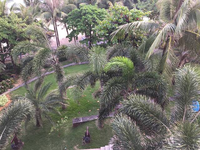 依然是6点半起床,依然是房间里看日初,一切都和前两天一样。 不同的是今天我们要离岛了,早餐我叫的美团外卖。然后我们在阳台上和酒店楼下拍了一些照片,最后收拾东西退房〜