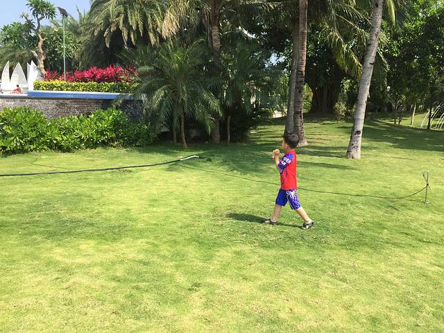 这个草坪还是不错的,就是没有足球。 中国足球踢得这么烂,就是因为草坪全在这样的酒店里。 城市里根本就没有一块好点的草坪的足球场地供孩子们踢球。