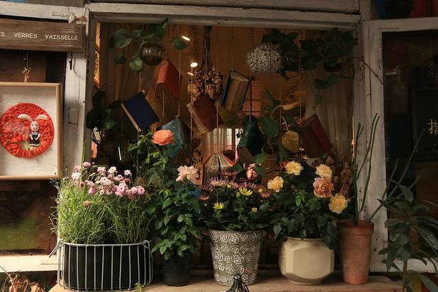 另一家是下浩里,店外的墙上写着:“我们回收历史。“这句话本身就足够吸引人了。再一次来到这里,还是能立刻想起我上一次坐在这里的场景——坐在茶室的窗边,喝着茶,看着书,偶尔抬头看一下屋外的瀑布和郁郁葱葱的黄桷树,颇有几分闲情逸致。