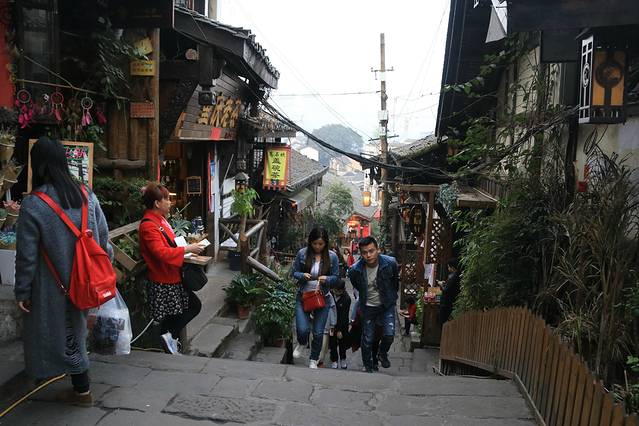 磁器口在沙坪坝区,虽然离市区稍远,但依然备受游客欢迎。它是一个古镇,但事实上磁器口的历史虽然悠久,但镇上的建筑却几乎都是仿古,这样的地方几乎每个城市都有,譬如北京的南锣鼓巷、上海的田子坊、武汉的昙华林、成都的锦里……
