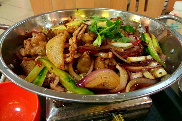 午餐在鹅岭公园正街上随便找了家苍蝇馆子解决,点了份蹄花混鱿鱼的干锅。说干锅可能很多外地人不是很清楚,其实和麻辣香锅是一个意思,因为几乎没有汤汁儿,所以叫干锅。一般是点一种荤菜,但很多店都可以混2-3种,再加上一些土豆魔芋之类的配菜,也算比较丰富。比起火锅的麻辣,干锅的味道以咸香为主,很下饭,价格也比火锅便宜,作为便餐不失为一个好选择。