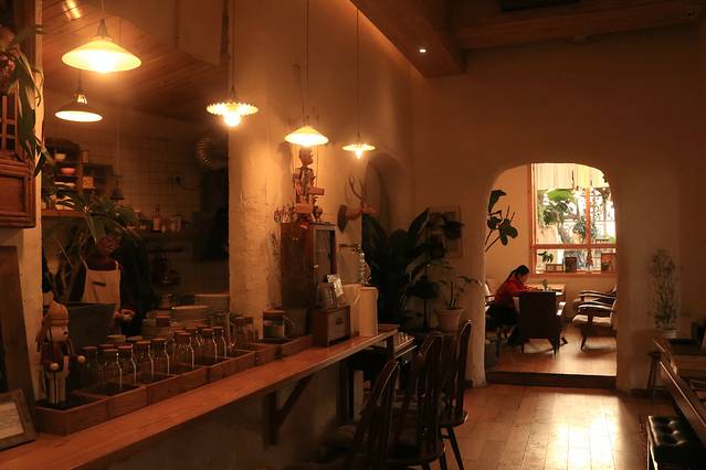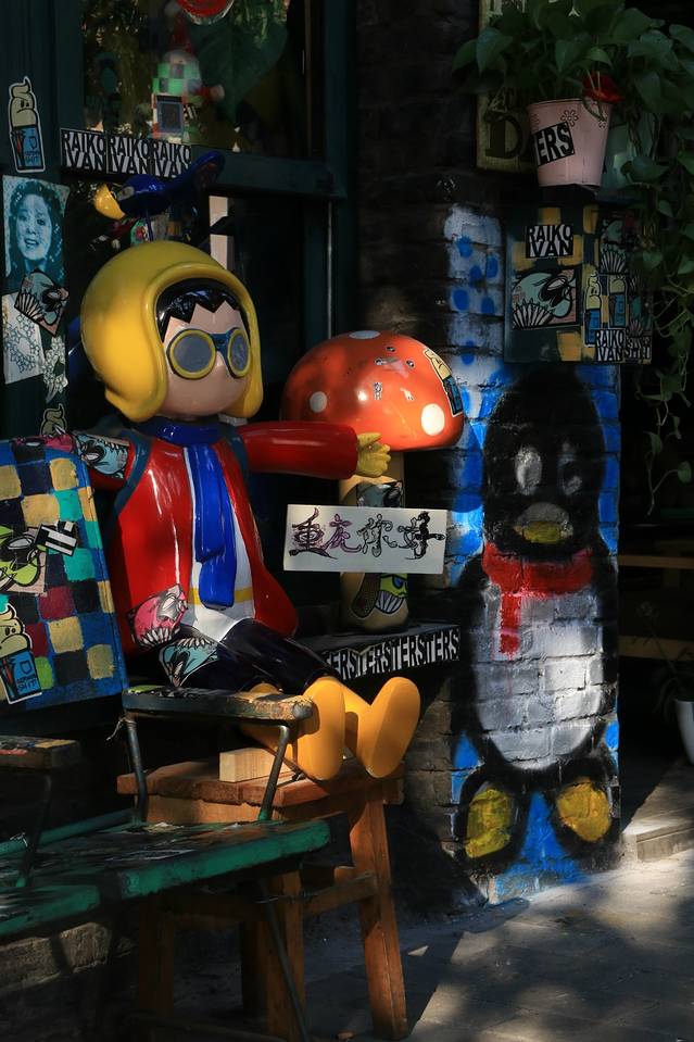 一进门就看到在捣鼓着花花草草的店主鱼叔,打过招呼之后找了个位置坐下,点了喝的。二厂这家店比起磁器口我说不出哪家好,但都是温暖而文艺的调调,店里的各种装饰品也都很有趣,与窗户外的景象仿佛是两个世界。